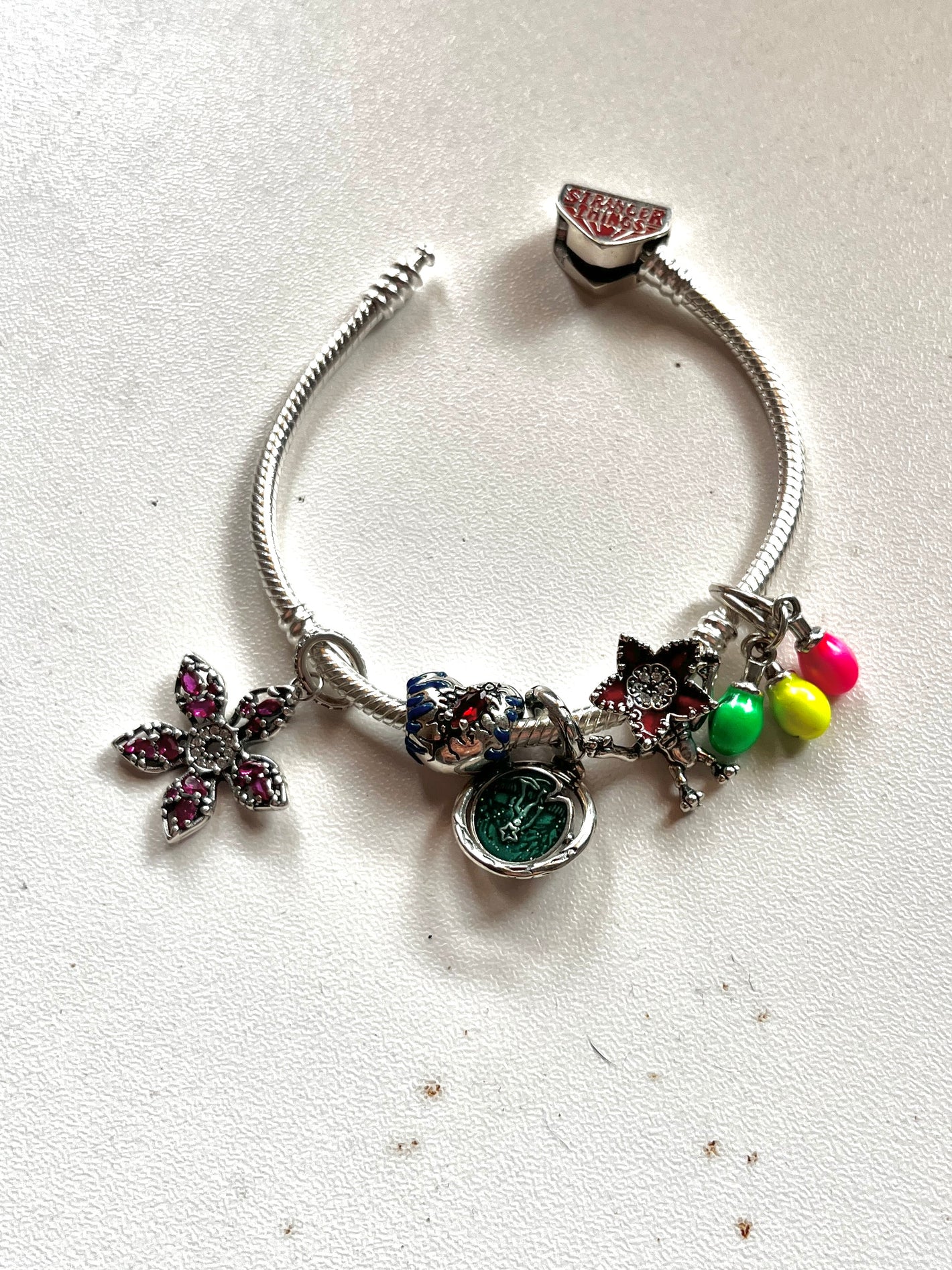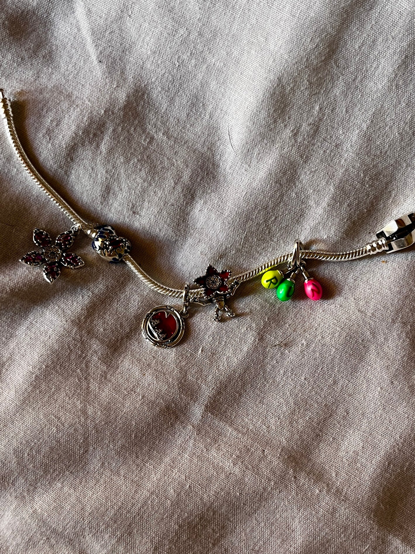 La pulsera está fabricada en plata de alta calidad con materiales premium que garantizan un brillo duradero y un acabado resistente. Su construcción sólida y cómoda realza el diseño inspirado en Stranger Things, ofreciendo una pieza elegante y perfecta para uso diario.